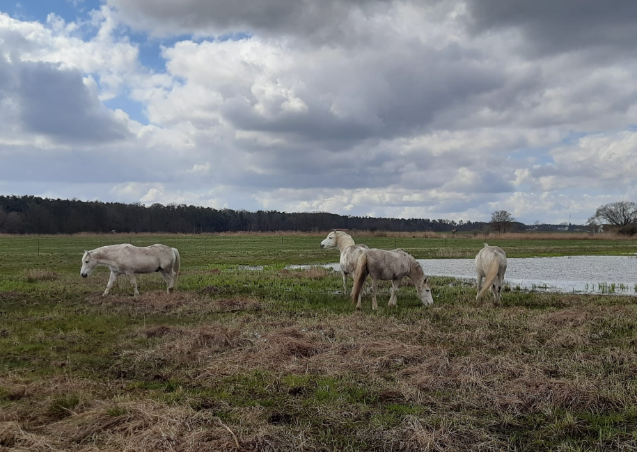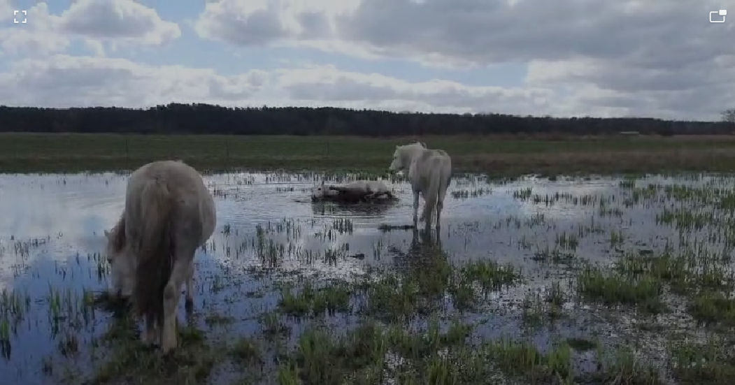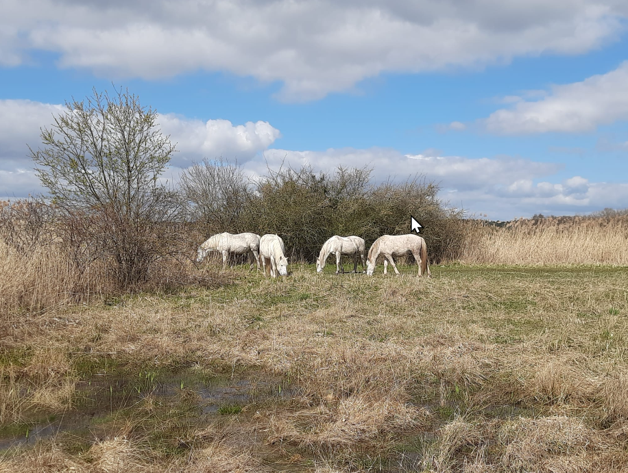 Seit wenigen Tagen grasen 4 Camargue Pferde im Mohrhofgebiet. Letzten Herbst waren es noch zwei. Sie fressen tatsächlich auch Schilf und halten so den Bewuchs im Zaun. Diese Pferderasse ist sehr robust und verträgt auch Nässe an den Hufen, ideale Voraussetzungen im Mohrhofgebiet. Meist sind sie auf dem Radweg zwischen Hesselberg und Mohrhof zu sehen.