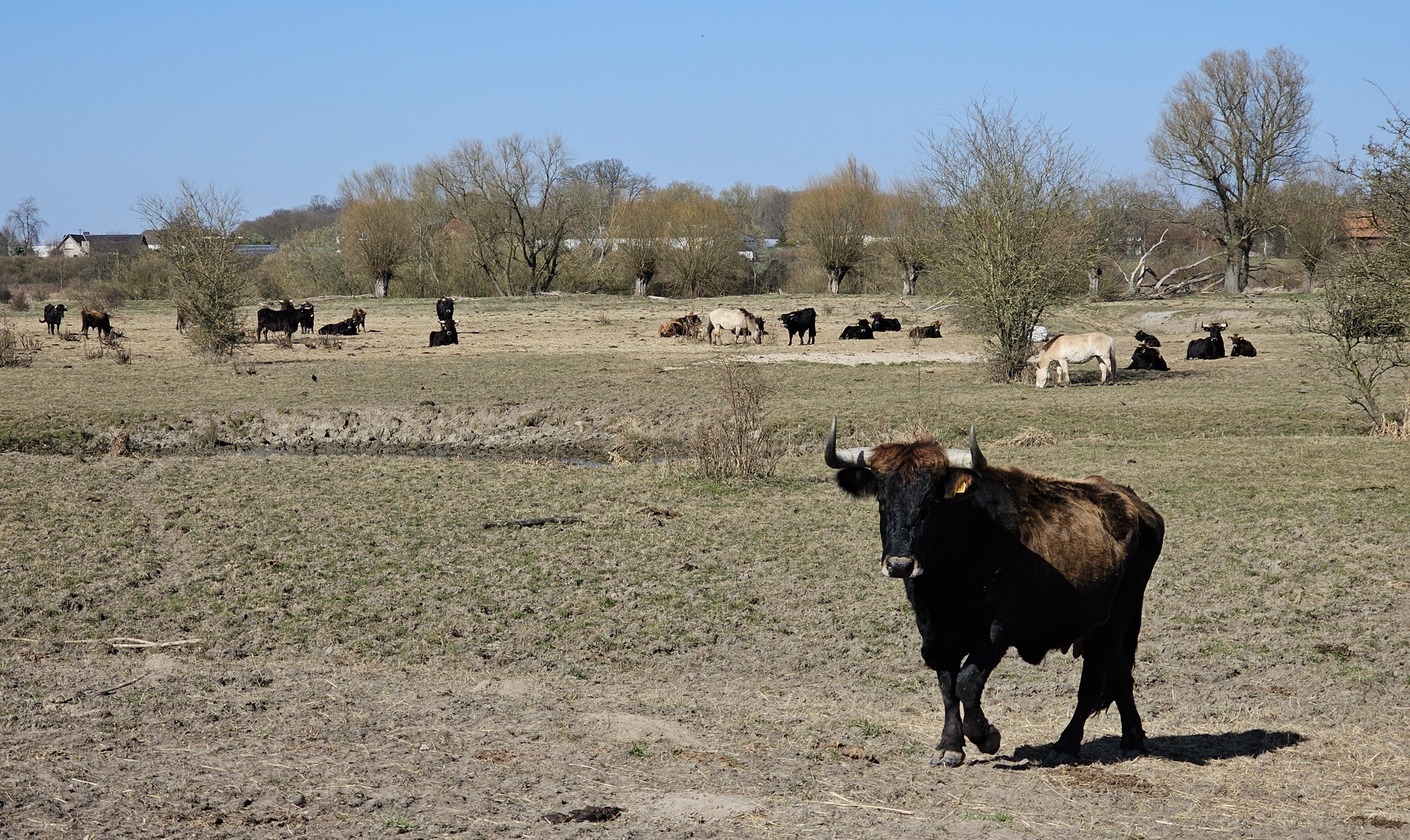 Heckrinder und Konik-Pferde in der Lippe Aue