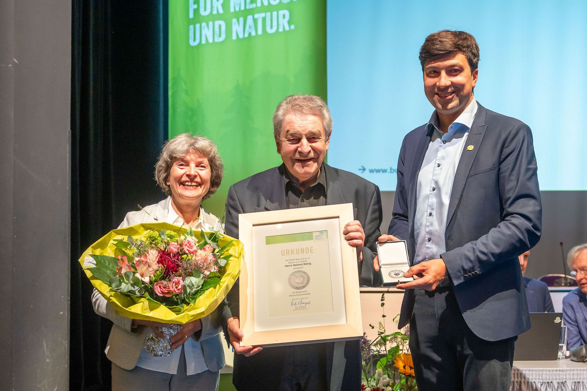 Am 24.05.2025 wurde auf der BN-Delegiertenversammlung in Fürth unser Orts- und Kreisvorsitzender Helmut König mit der Bayerischen Naturschutzmedaille geehrt.