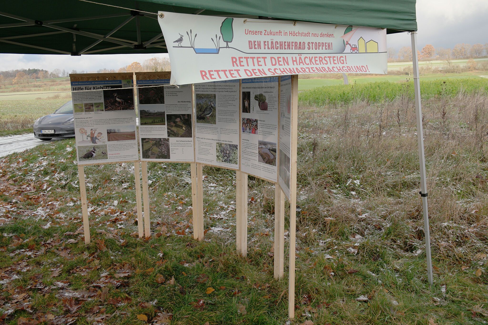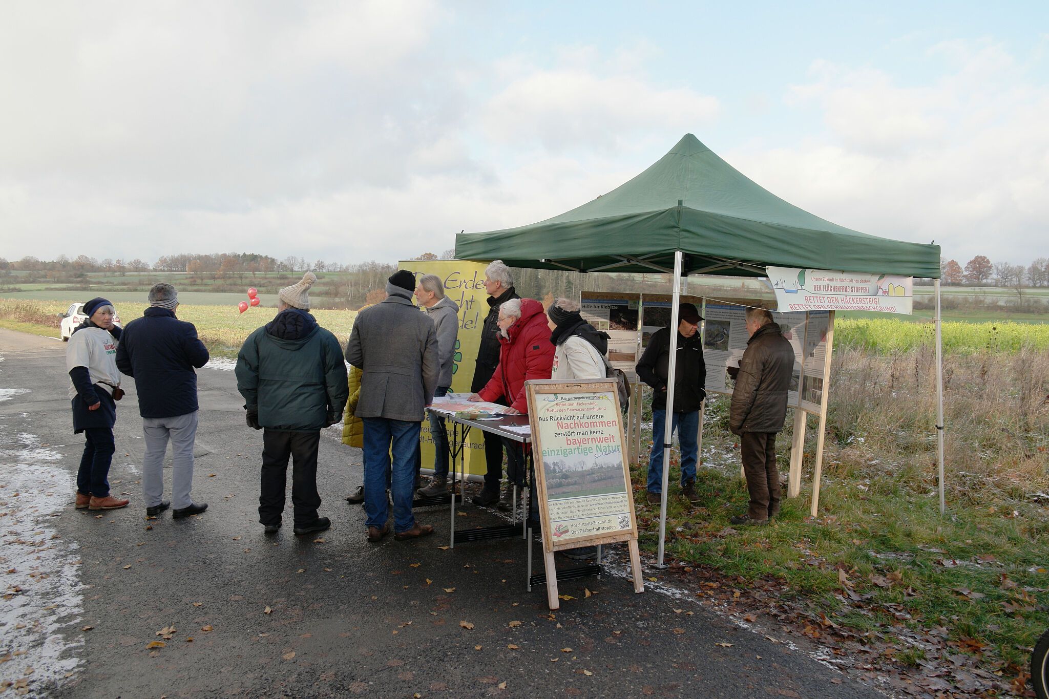 Am Sonntag, 11.12.2022 unterstützte der Bund Naturschutz (BN) die Bürgerinitiative „Rettet den Häckersteig“ mit einer Infoveranstaltung am Wasserhaus in Verlängerung der Wachenrother Straße. Von dort gibt es einen imposanten Blick über den gesamten Häckersteig. Der Zulauf war zwar nicht vergleichbar mit dem gleichzeitig stattfindenden Weihnachtsmarkt in der Altstadt, aber man konnte sich bei Glühwein, Punsch und Lebkuchen eingehend über die Terrassenlandschaft und das Bürgerbegehren informieren. „Wir wollten die Ergebnisse und Analysen zum Projekt Hilfe für Kiebitze den Leuten nahebringen“ erklärte der BN-Kreisvorsitzende Helmut König. „Für viele war überraschend, dass gerade im Bereich Häckersteig und im Schwarzenbachgrund ein reges Brutaufkommen der stark vom Rückgang gezeichneten Vögel im Aischtal beobachtet und registriert wurde.“