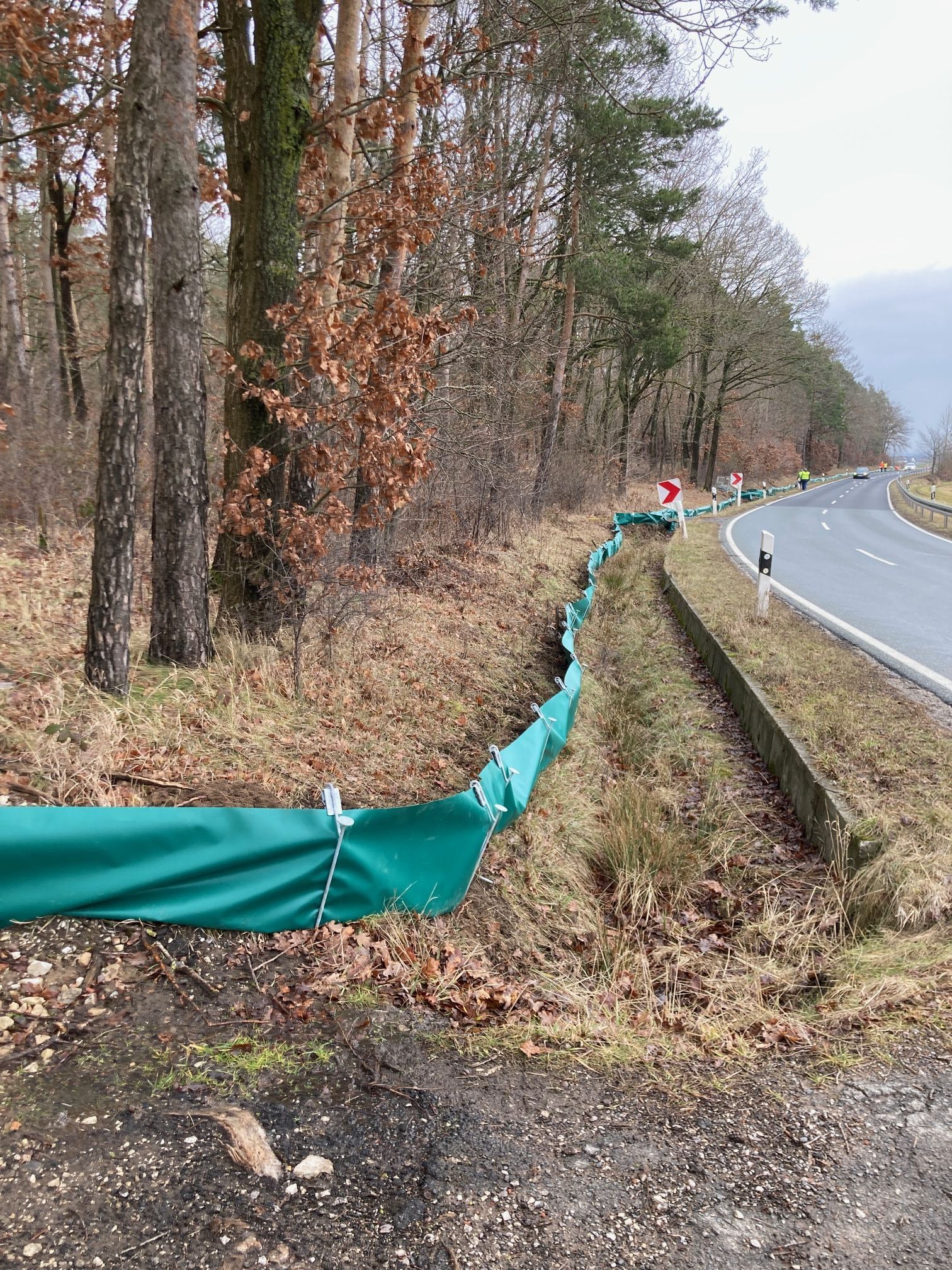2021 wurden keine Zäune aufgestellt. Gerade im Bereich des Waldes ist es damit absolut gefährlich die Tiere, teilweise von der Straße, einzusammeln.