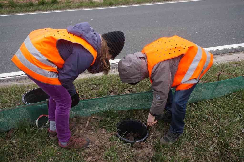 Genau 51 Ehrenamtliche waren 2025 von Anfang Februar bis Ende April an den 12 Amphibien-Übergängen in unserem Landkreis aktiv. Hierbei sammelten sie entlang von mobilen Leitsystemen aus ebenerdig versenkten Eimern vor engmaschigen Kunststoffzäunen, in denen die Tiere bei ihrer Wanderung entlang des Zauns fallen bzw. entlang der fest installierten Leitsysteme. Dabei werden die Amphibien nach Arten gezählt und zu den Weihern auf der gegenüberliegenden Straßenseite entlassen. Außerdem werden die Übergänge auf Schwachstellen und toten Tieren auf der Straße überprüft. Jährlich werden so bis zu 7.000 Amphibien alleine bei uns im Landkreis gerettet. Nur zum Zeitpunkt des Laichens wandern die Amphibien bei den ersten warmen Frühlingstagen (oft beim ersten warmen Regen und Nachttemperaturen über 5°C) fast gleichzeitig los. Auf dem Rückweg lassen sie sich dann oft ganz unterschiedlich Zeit, was bis in den Herbst dauern kann. Dadurch ist die Rückwanderung über einen größeren Zeitraum verteilt. Sie ist somit für Amphibien und Straßennutzer gleichermaßen nicht so gefährlich wie die Wanderung zum Laichplatz am Anfang des Jahres.
